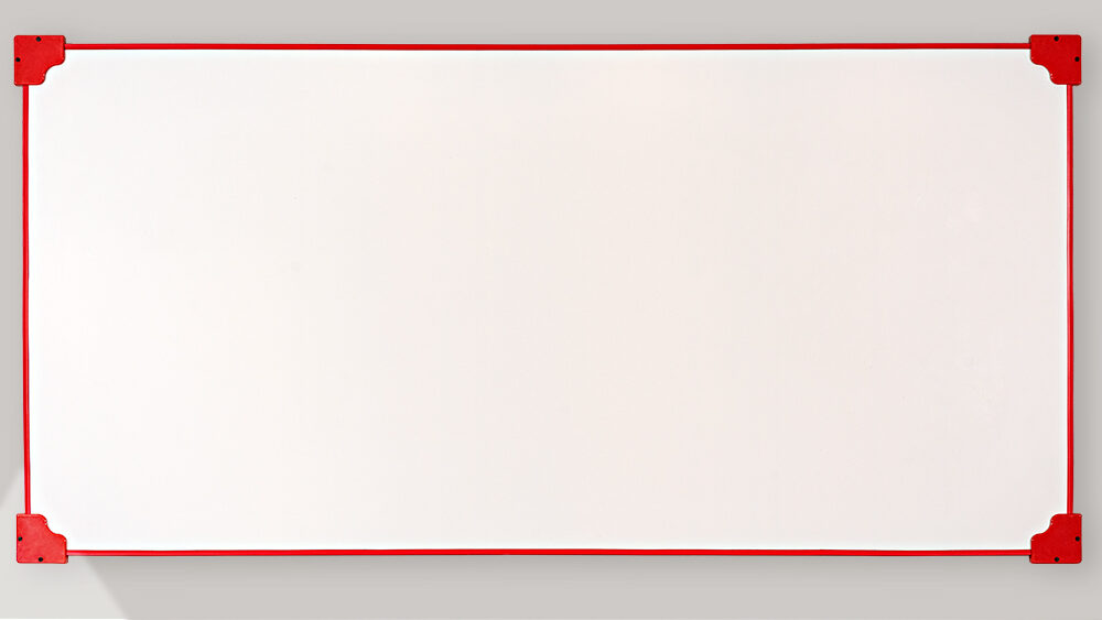 Nossos quadros de porcelana possuem superfície frontal com chapa de aço cerâmico (porcelana) branco com mínimo de 0,4 mm de espessura e dureza Mohs mínima de 5 (item 6.4 da norma EN ISO 28762).