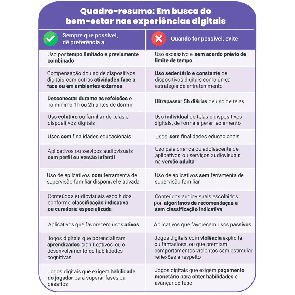 Fonte: Secretaria de Comunicação Social. Baixe o guia em: https://www.gov.br/secom/pt-br/assuntos/uso-de-telas-por-criancas-e-adolescentes/guia