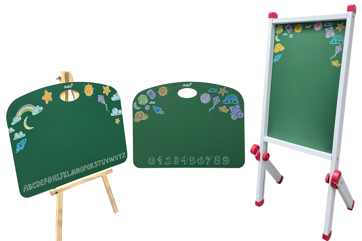 As lousas verdes, que acompanham giz, são perfeitas para estimular a criatividade e a coordenação motora fina, já que é possível escrever e apagar quantas vezes quiser.