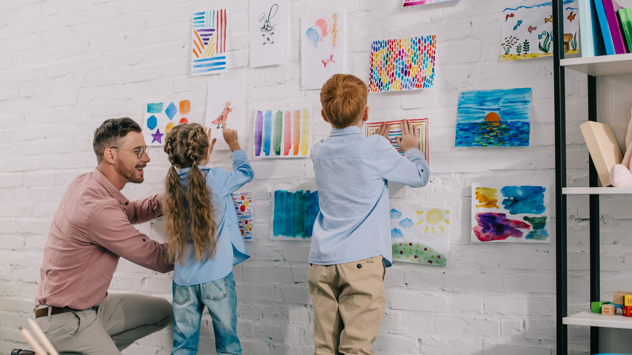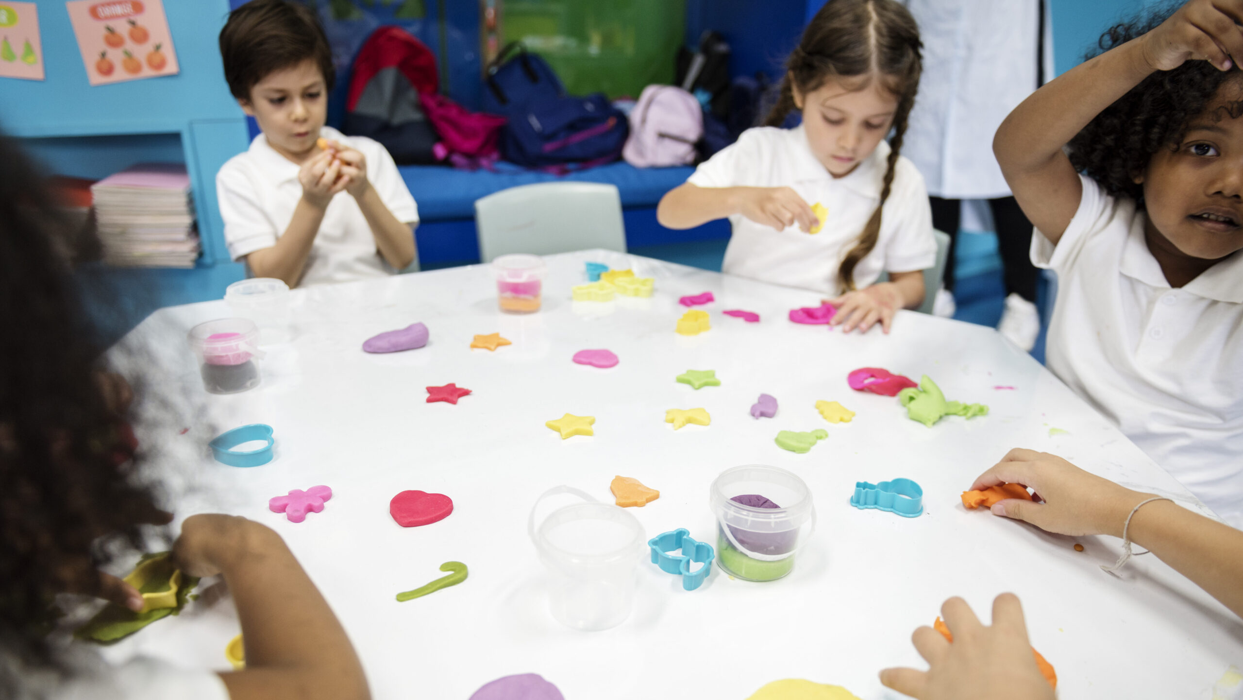 Desenvolver a criatividade e a imaginação, oferecendo materiais físicos como tintas, papéis, massinhas e quadros e telas de pintura;